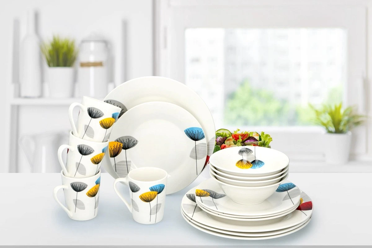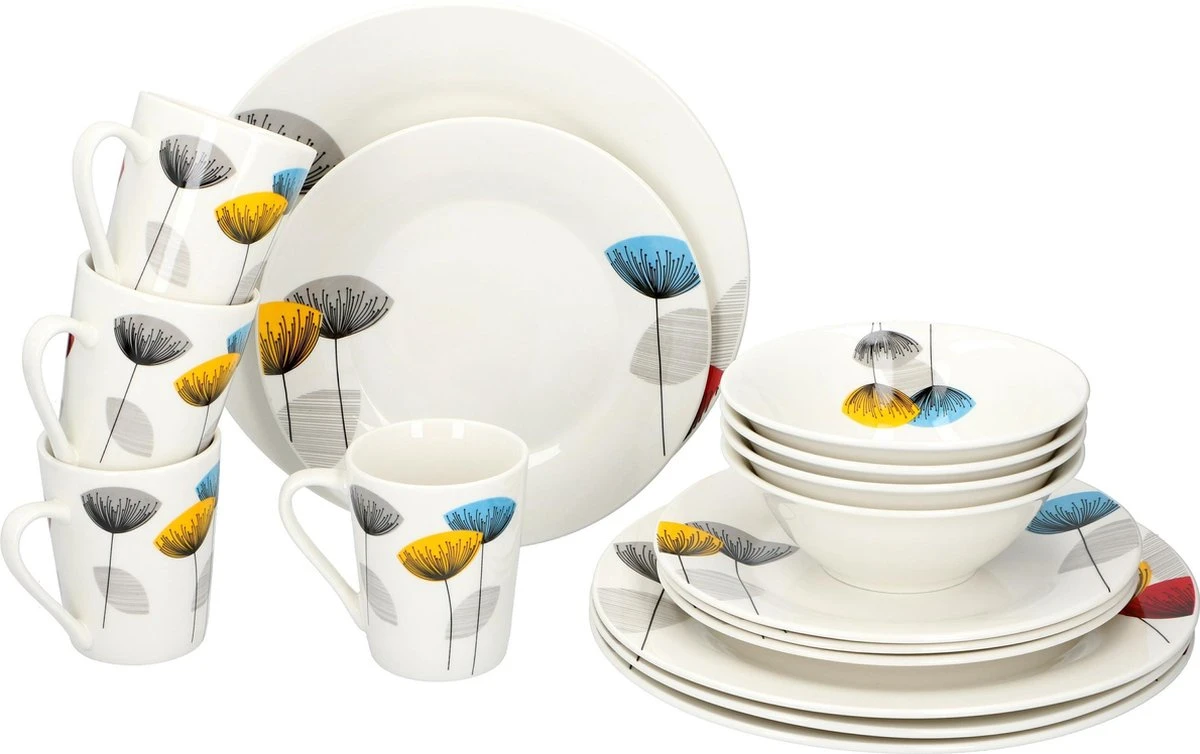 Wat een prachtig servies. De abstracte bloemenprint in frisse kleuren staat goed op elke eettafel. Dit 16-delig servies van Alpina is geschikt voor dagelijks gebruik, maar kan ook gerust voor feestelijke gelegenheden uit de kast gehaald worden.