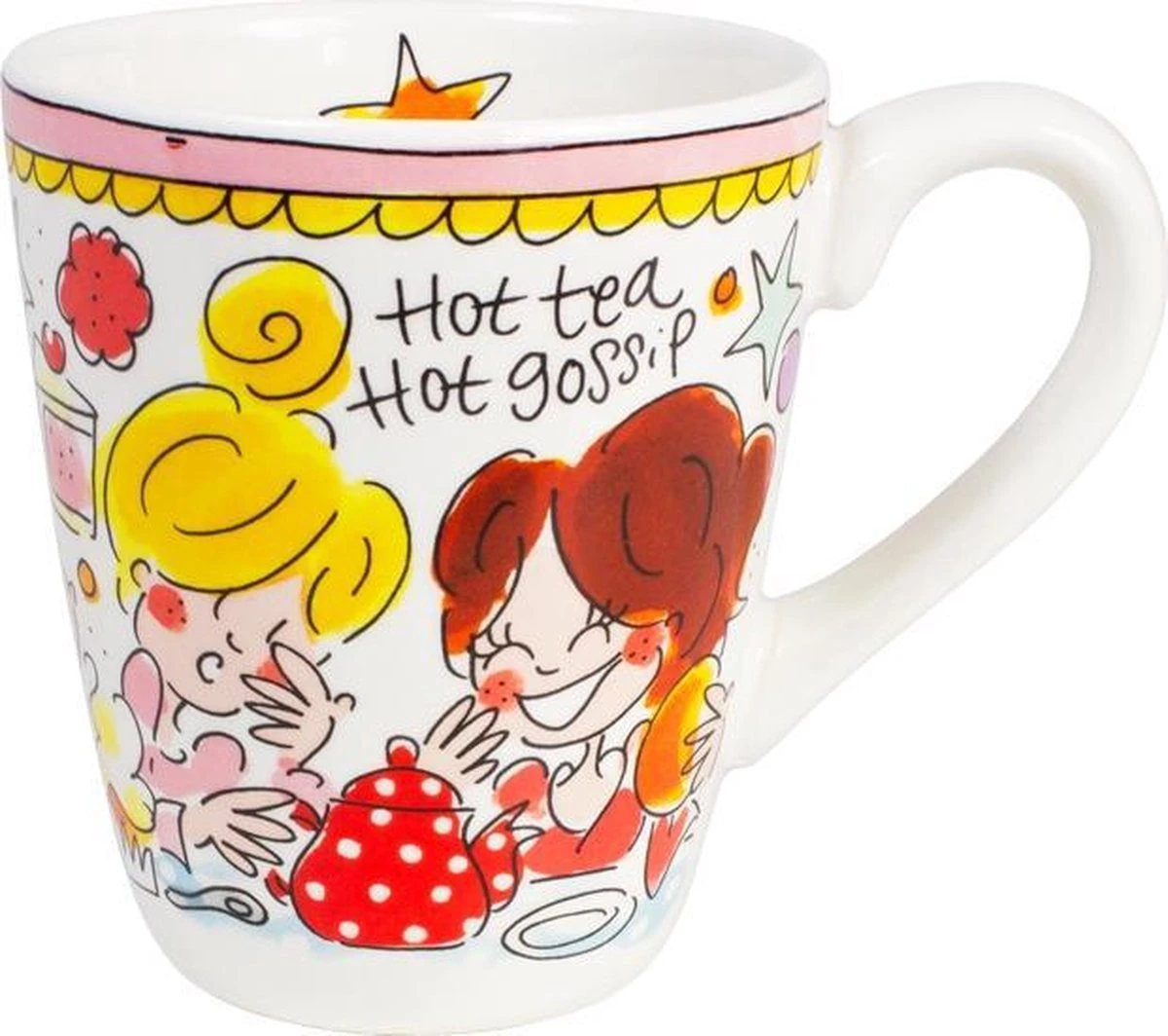 Deze vrolijke Blond Amsterdam mok is onderdeel van de welbekende Even Bijkletsen serie en heeft een inhoud van 350 ml. De rand van de beker heeft een roze kleur, wat onderdeel is van deze vernieuwde lijn. De mok staat vol met herkenbare en vrolijke illustraties en aan de binnenkant staat een oranje ster. De aardewerk mok is perfect voor een heerlijke kop koffie of thee. Ontdek de rest van het vrolijke Blond Amsterdam servies en alle andere koppen en mokken in onze webshop.
