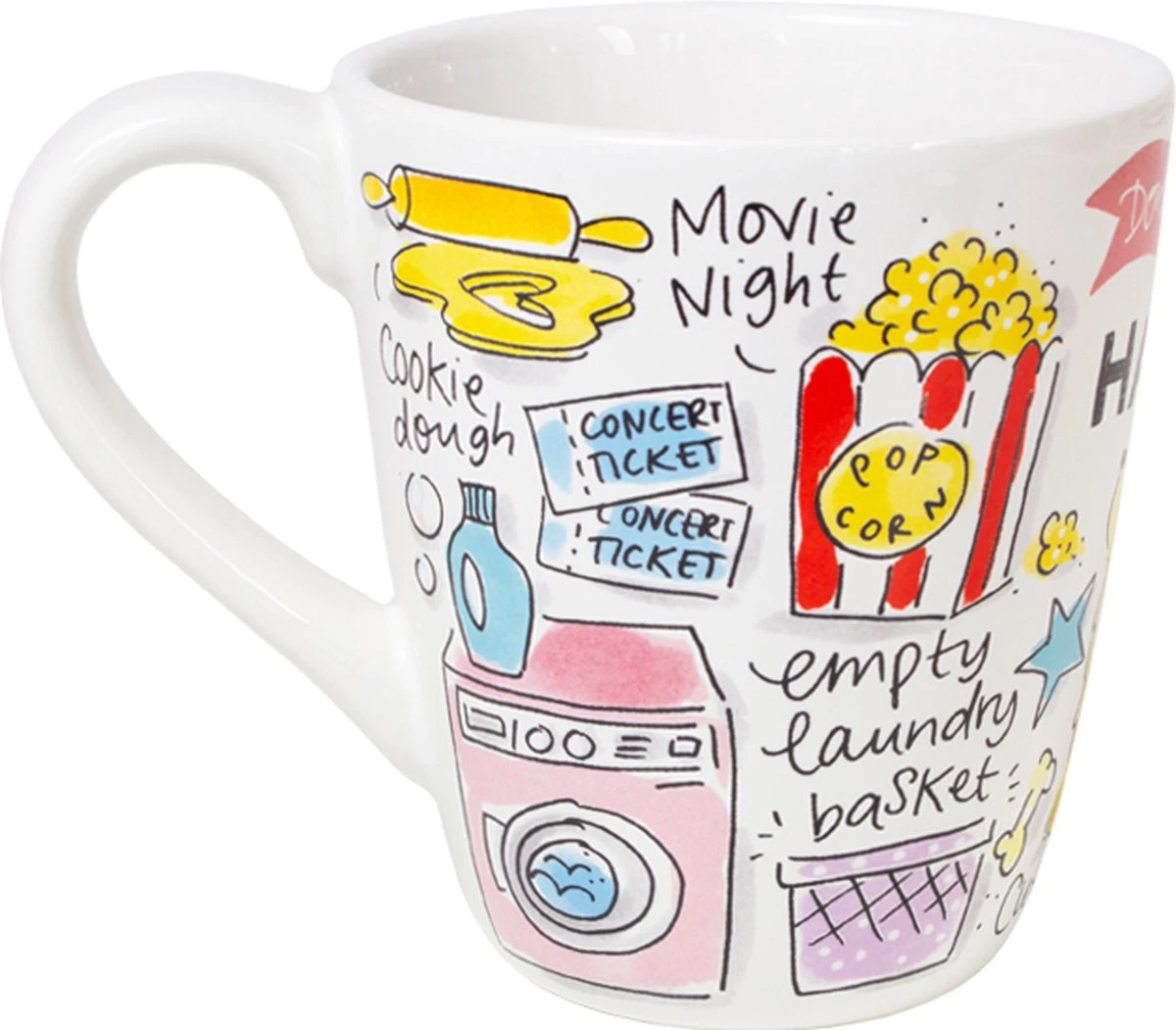 This make me happy! Deze vrolijke beker, maakt jouw tafel nog gezelliger! De opvallende en kleurrijke illustraties zijn in het thema Happy ontworpen. Op de beker staan allemaal grappige quotes die jou blij maken. Zoals cute puppy, movie night en cookie dough. De beker is leuk te combineren met de andere nieuwe Happy items.