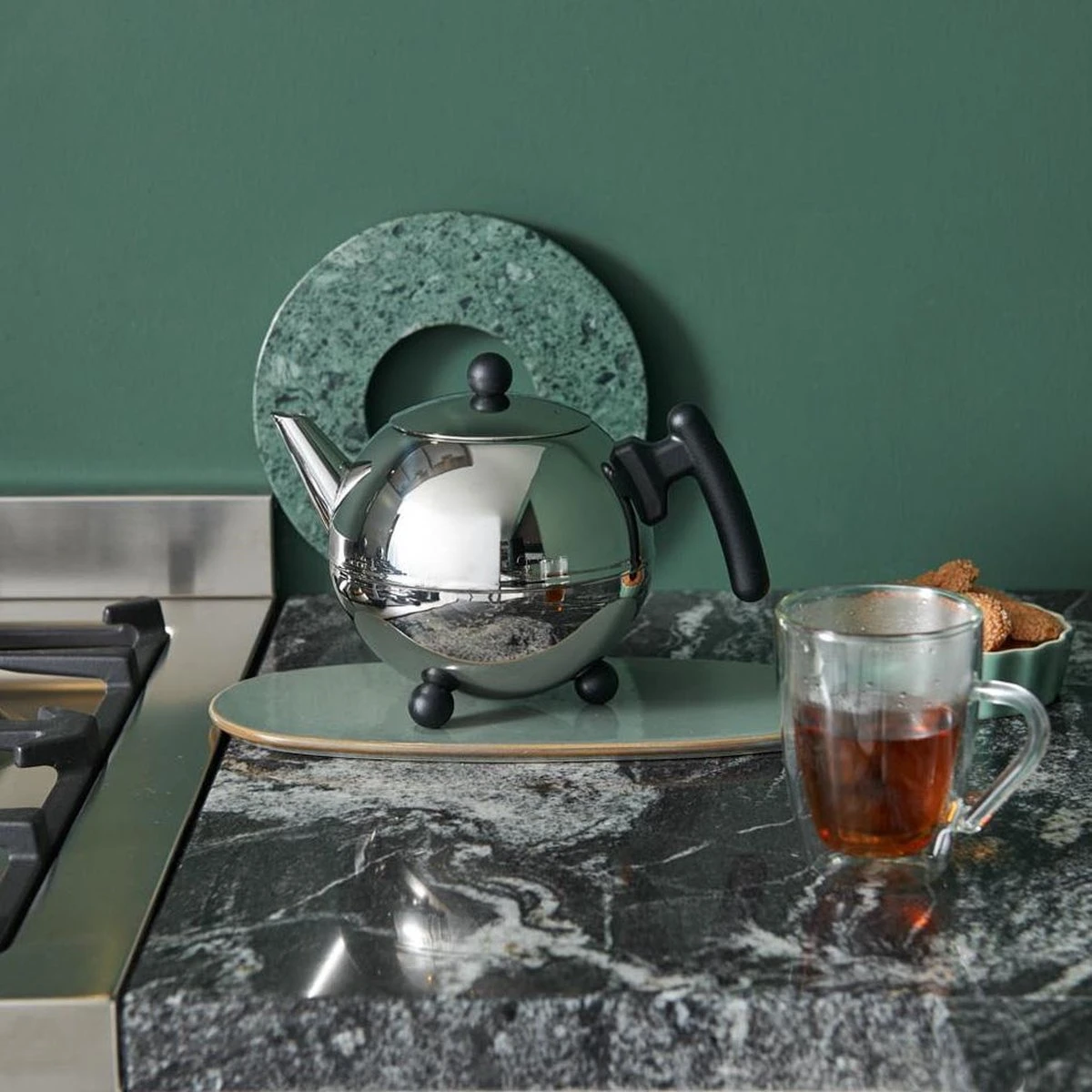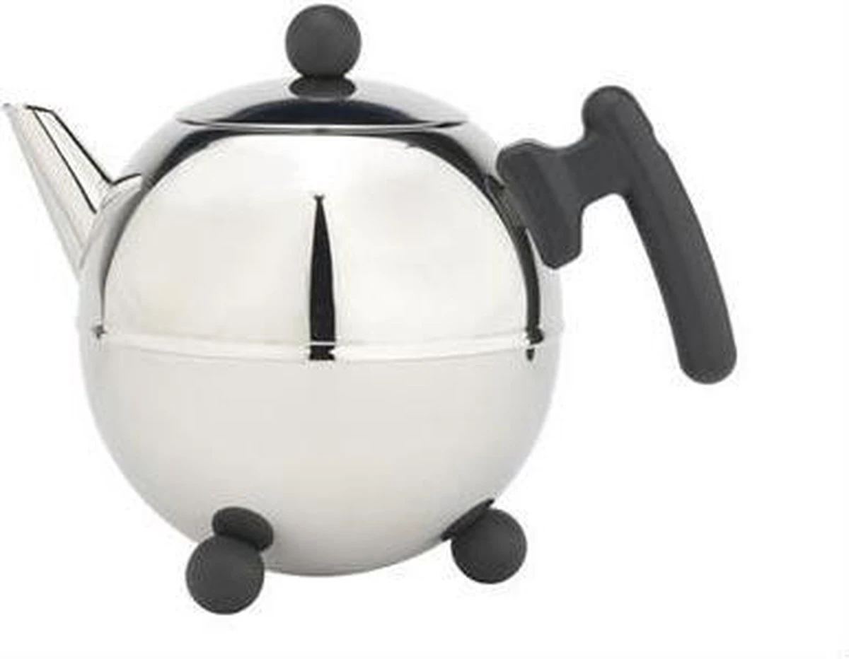 De Duet® Bella Ronde is een echte Bredemeijer® klassieker! De bekende ronde vorm is al op vele keukentafels aangetroffen. De Duet® Bella Ronde is gemaakt uit hoogwaardig metaal en heeft een dubbele isolerende wand. Daardoor blijft thee wel drie kwartier tot een uur lang warm en op smaak (indien de theepot minimaal tot 90% gevuld is). Dankzij de speciaal vormgegeven tuit schenkt de theepot optimaal en zonder druppelen. De handgreep en knop worden maximaal handwarm door het isolerende materiaal. De theepot heeft een inhoud van 1.2 liter, geschikt voor 6 koppen thee. (gemiddeld is een theekop 200ml)