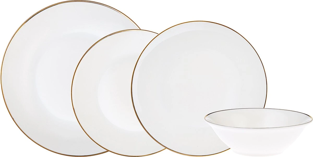 Inhoud-6 stuks serveer borden-6 stuks Taartplaat-6 stuks diep bord-6 stuks kommenMateriaal: Porselein Handen wassen wordt aanbevolen