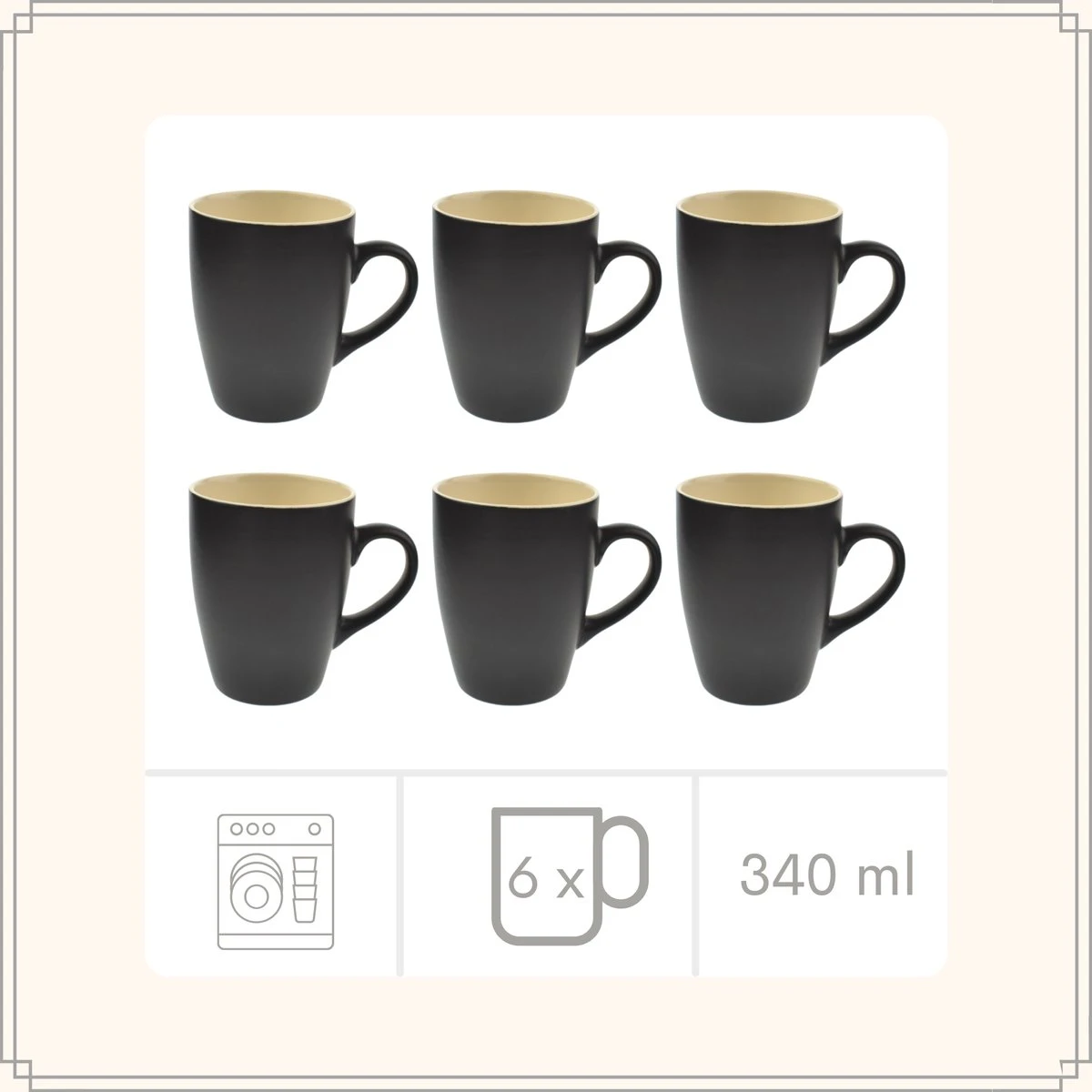 OTIX Koffiekopjes – Met Oor – Set Van 6 – Theekoppen – 340ml – Zwart – Keramiek
