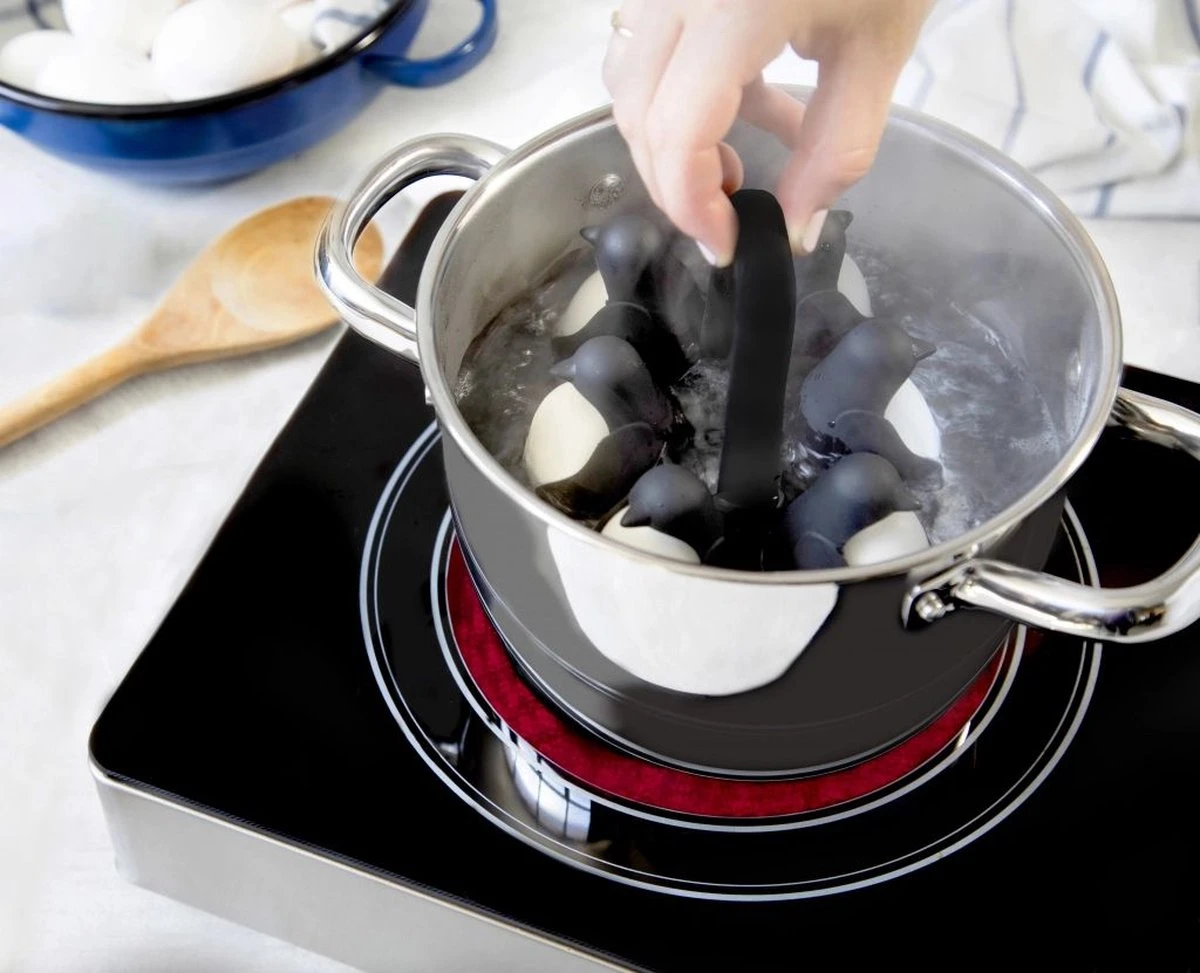 Egguins eierhouder van Peleg Design. Eierhouder in de vorm van een groepje pinguïns. De Egguins cook, store & serve egg holder kan zes eieren tegelijk bewaren. Zet ze in de koelkast, in een pan kokend water en daarna op tafel. De makkelijkste manier om eieren in kokend water te leggen is met deze pinguïn eierhouder. De houder is gemaakt van plastic en heeft een afmeting van 14,7 x 12,1 x 12,6 centimeter.