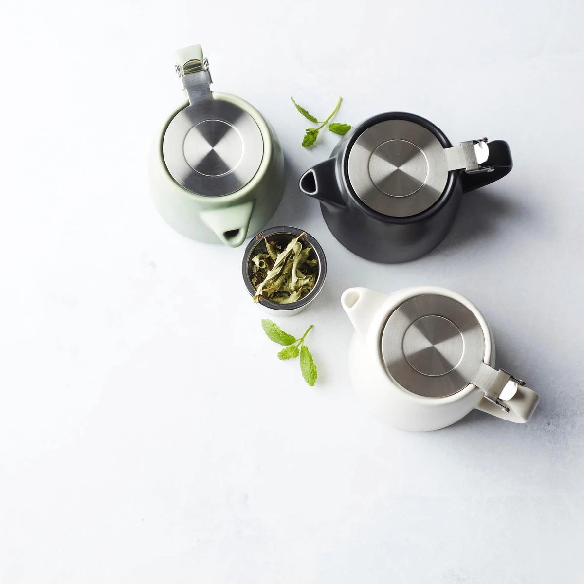 Geniet van je verse thee met deze theepot met infuser van Point-Virgule. Voeg naar smaak theebladeren of kruiden toe in de roestvrijstalen infuser en plaats in de pot. De theebladeren hebben voldoende ruimte om te ‘zwemmen’ en de gewenste smaak af te geven. Door de fijne perforatie in de infuser zal je ook geen ongewenst gruis vinden in je thee. De ideale theepot voor de ultieme theebeleving!