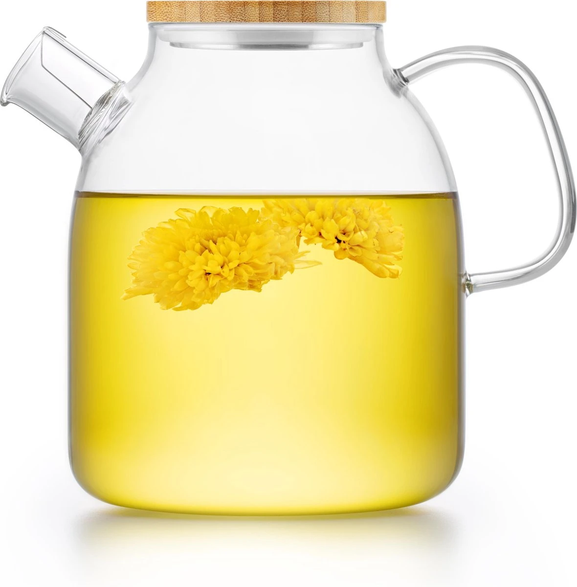 S091 Glazen Theepot Met Bamboedeksel – 1600 Ml – Samadoyo