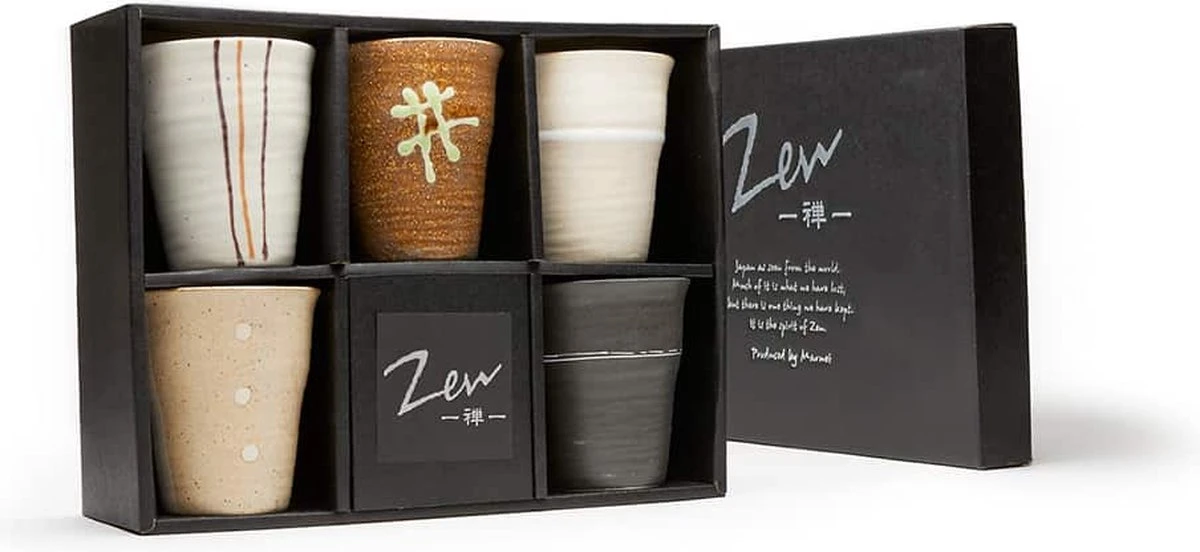| Verpakkingsinhoud | 1 Vijf Japanse keramische mokken in giftsetverpakking |