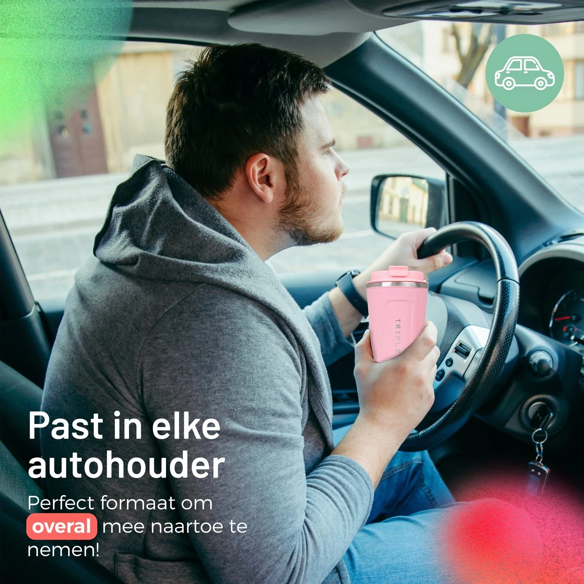 Triple J® Koffiebeker To Go – Thermosbeker – BPA & Lekvrij – 380ml – Roze